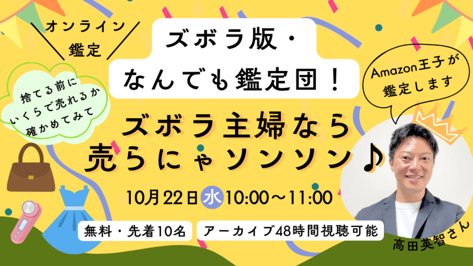 ズボラ版・なんでも鑑定団!ズボラ主婦なら 売らにゃソンソン♪【10/22(水)無料オンライン鑑定】